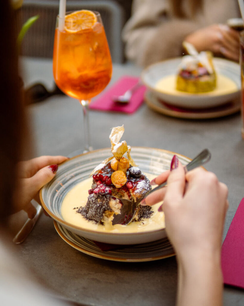 A desszertek esetében ugyanez a gondolkodás jelenik meg – csak játékosabb formában. A mákos guba nála nem egy lezárt recept, hanem egy folyamatosan alakítható alap. „Friss gyümölcsökkel, új textúrákkal vagy tálalással lehet különlegessé tenni, de az alap karakternek meg kell maradnia.” Ennek mentén született meg például a pisztáciás változat, és készül a fehércsokoládés, bogyós gyümölcsös verzió is.